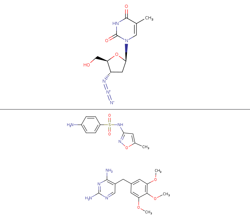 The toxicity of combinations of AZT (200 or 400 mg/kg), TMP/SMX (1,000, 2,000, or 3,000 mg/kg), and folinic acid (10 mg/kg) was evaluated in Swiss (CD-1®) mice treated by oral gavage. The doses of AZT are equivalent to two and four times the therapeutic dose in humans (based on body surface area); doses of TMP/SMX are one, two, and three times the therapeutic dose for toxoplasmosis in mice. The dose of folinic acid is 100 times the nutritional requirement in mice. Male mice (10 per group) were dosed from day 5 until the day prior to sacrifice on day 25 or 26. Females were divided into two groups designated female-A mice and female-B mice. The female-A mice (20 per group) were dosed from day 0 to sacrifice. They were cohabited with treated males on days 9 to 13 to test for effects on mating behavior, fertilization, and implantation, and caesarean sections were performed on days 28 to 32. The females designated as female-B mice (20 per group) were cohabited with untreated males on days 0 to 4. Sperm-positive female-B mice were dosed during organogenesis on days 6 to 15 of presumed gestation and sacrificed on day 4 of lactation.