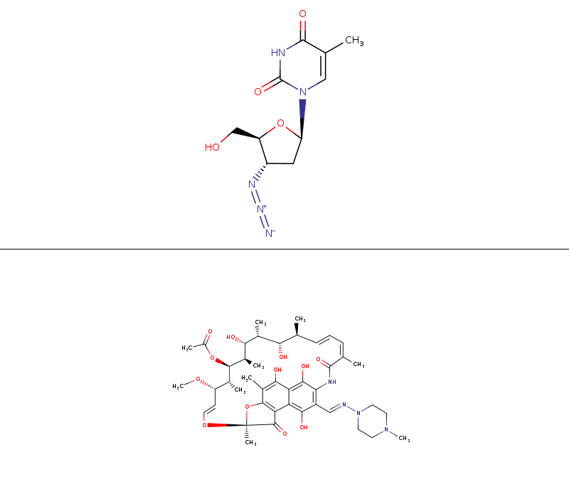 Male and female B6C3F1 mice were dosed orally with AZT alone (100, 200, or 400 mg/kg), rifampicin alone (100, 200, or 400 mg/kg), or combinations of AZT and rifampicin for up to 94 days. Mice were evaluated for clinical findings, mean body weight, hematology and clinical chemistry parameters, and sperm function and vaginal cytology. All core study animals and the clinical pathology study animals that died early were necropsied and subjected to histopathological evaluations. A summary of the most significant toxicological parameters is presented in Table 1.