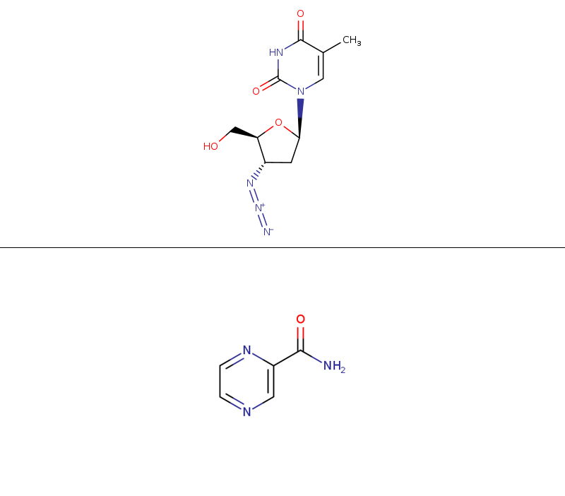 Administration of AZT alone to male mice resulted in a mild dose-related anemia accompanied histopathologically by hematopoietic cell proliferation in the spleen. Administration of pyrazinamide alone to male mice did not produce significant alterations in hematology parameters, and histopathological alterations were limited to minor degrees of hepatocellular glycogen depletion and hematopoietic cell proliferation in the spleen. Administration of combinations of AZT and pyrazinamide to male mice resulted in exacerbation of the anemia produced by AZT alone. Combination therapy in male mice also resulted in diminished leukocyte, neutrophil, and lymphocyte counts and a treatment-related thrombocytosis. Significant histopathological alterations consisted of bone marrow depletion, hematopoietic cell proliferation in the spleen, atrophy of the splenic red pulp, and hepatocellular glycogen depletion.