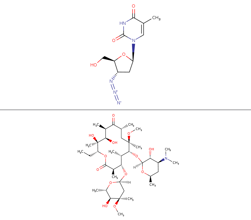 Administration of AZT in combination with 250, 500, or 1,000 mg/kg clarithromycin resulted in hematopoietic toxicity in male and female-A mice, and the severity of the anemia was far greater than that induced by AZT alone. The anemia was accompanied by bone marrow depletion and by hematopoietic cell proliferation and hemosiderin deposition in the spleen. The anemia was macrocytic in the majority of the treatment groups but progressed to a microcytic anemia in the highest dose female-A group. Reticulocytopenia and sporadic thrombocytosis were also considered to be treatment-related manifestations of hematopoietic toxicity. In general, alterations in other tissues were similar in morphology, incidence, and severity to those induced by clarithromycin alone.