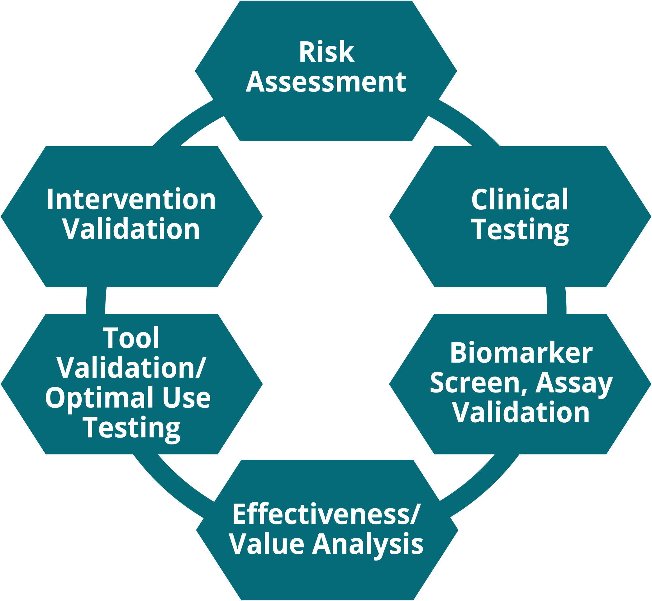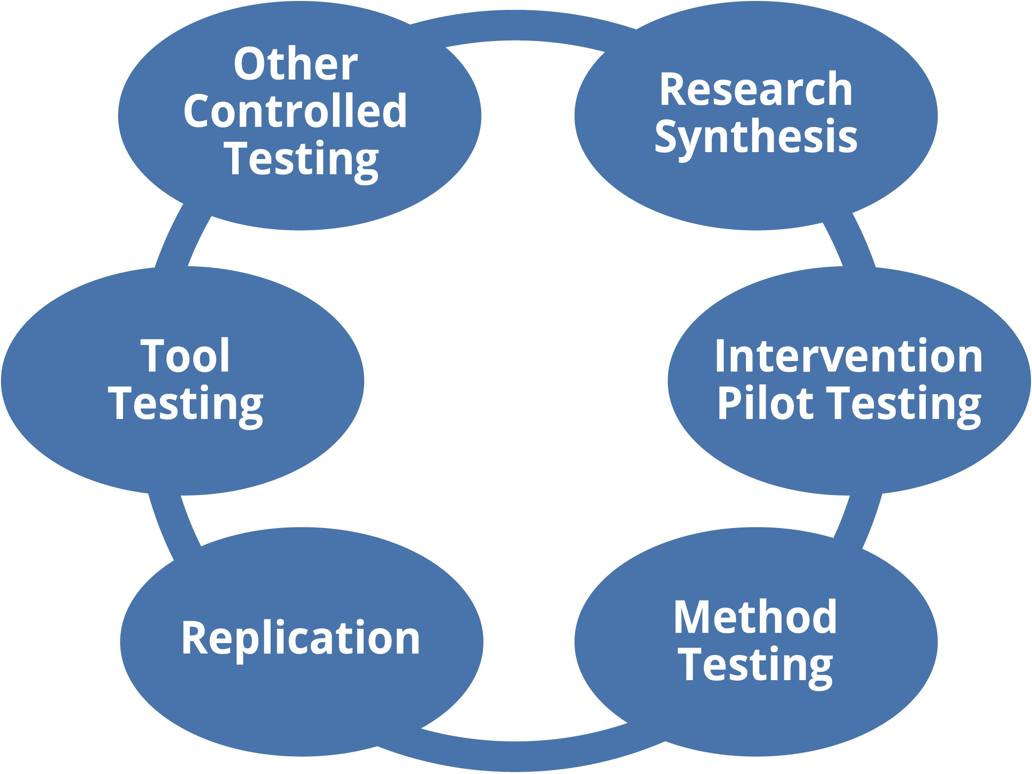 The implementation and adjustment category is about implementing hypotheses in real-world settings and adjusting the product (intervention, tool, method, treatment, etc.) to account for differences in different settings and populations. Examples include biomarker, screen, or assay validation, clinical testing, tool validation and use, and effectiveness testing. Much of the current work in dissemination and implementation science would fit within this ring.