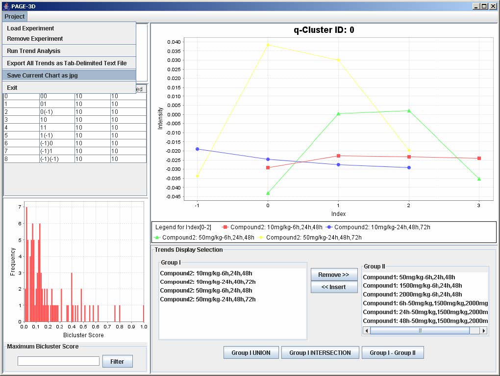 25. Enter 0.6 for Maximum Bicluster Score in the lower left panel and click Filter