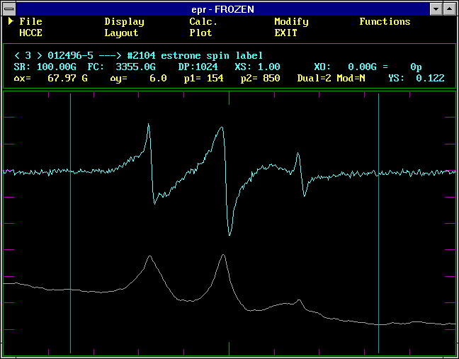 The default program, EPR.EXE, has room for 20 spectra of up to 2048 data points. If more resolution is needed, two other programs are available: EPR4K.EXE has 10 pages of 4096 data points, EPR8K.EXE has 5 pages of 8192 data points. The simulation programs can calculate up to 4096 data points.
