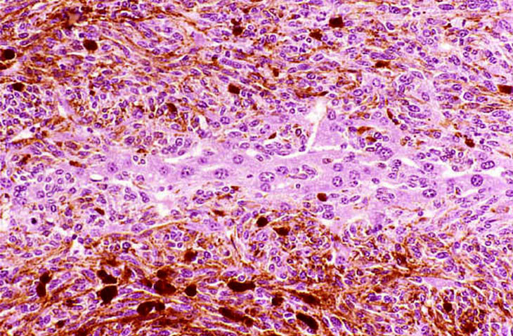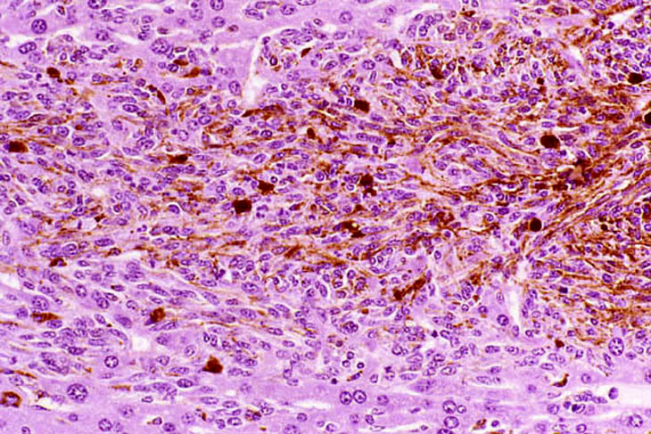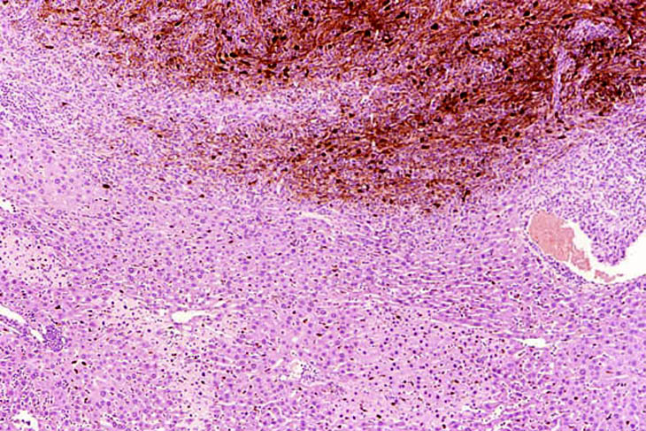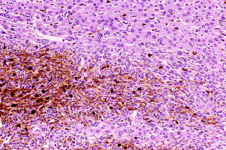 Visit the NTP WebsiteMalignant melanoma metastatic to the liver is uncommon. This case was from an adult C57BL/6 mouse.
