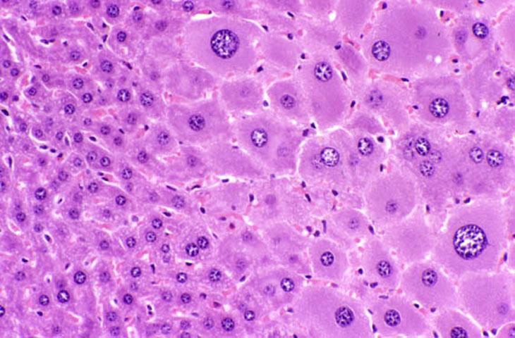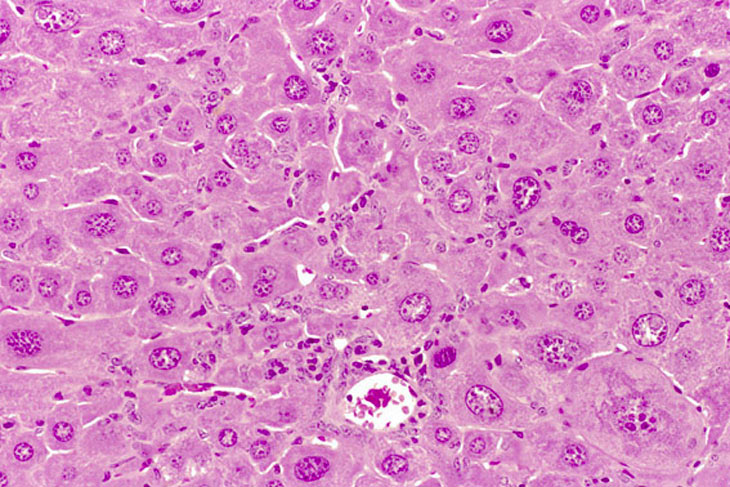 Visit the NTP WebsiteHepatocellular hypertrophy is frequently seen in the liver following exposure to agents that cause hepatic enzyme induction. The hypertrophy typically starts in the centrilobular area and extends to the mid-lobular and eventually periportal areas provided there is sufficient stimulus over time. In situations of prolonged exposure to some agents, the hypertrophic hepatocytes are seen to have enlarged polyploid nuclei. With some treatment regimens, hepatocytes may actually become cytomegalic. Cytomegalic hepatocytes typically have single polyploid and/or multiple nuclei.
