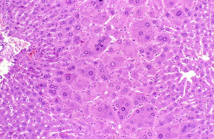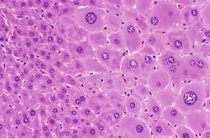 Visit the NTP WebsiteThe normal mouse liver contains hepatocytes that are diploid, tetraploid, and octaploid with increase ploidy occurring as the animal ages. A tetraploid hepatocyte may have twice the complement of DNA either by having two diploid nuclei (binucleated hepatocyte) or a single nucleus which contains twice the diploid amount of DNA. A variety of treatment regimens cause alterations in ploidy with single hepatocytes sometimes having several diploid nuclei (multinucleated hepatocytes). The hepatocyte regeneration that follows partial hepatectomy is the result of proliferation of diploid cells. Polyploidy develops once the liver has completed regeneration.