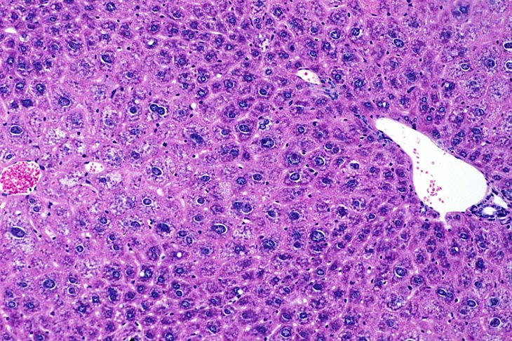 Visit the NTP WebsiteCentrilobular hepatocellular hypertrophy in a CD-1 mouse.