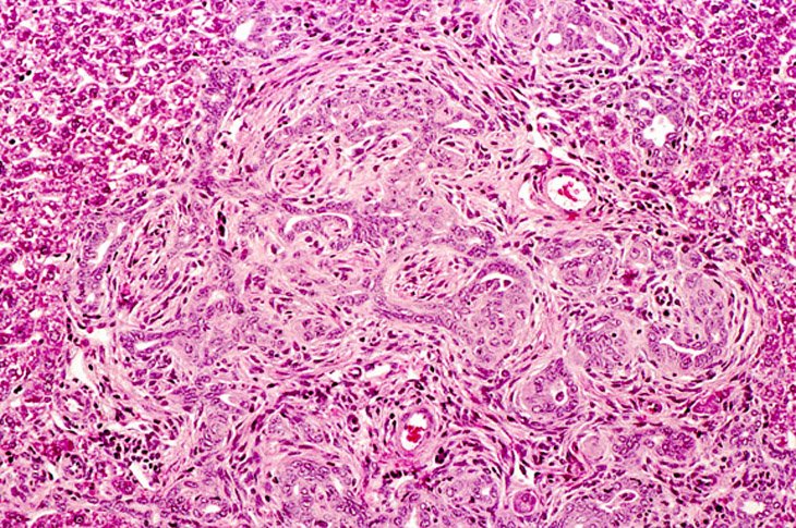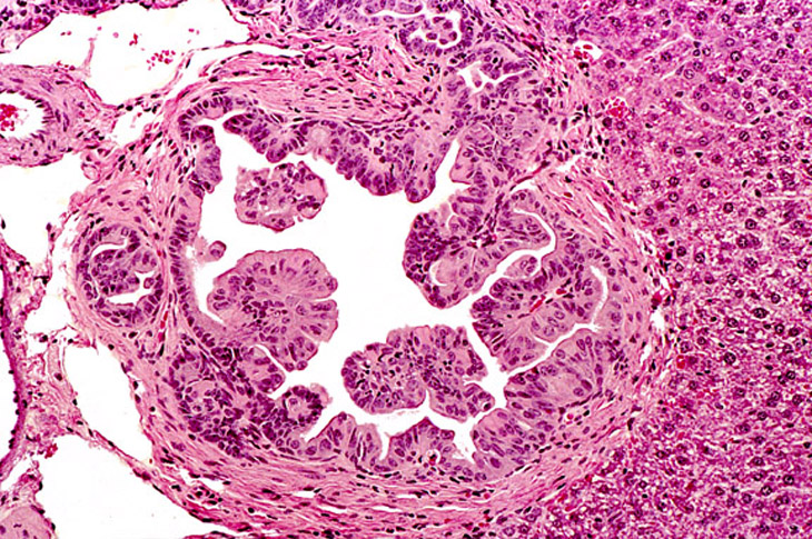 Cholangiocarcinoma in a 4-week old AL-ras x AL-myc mouse.