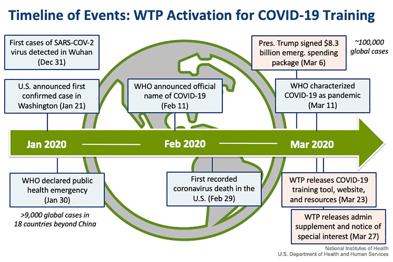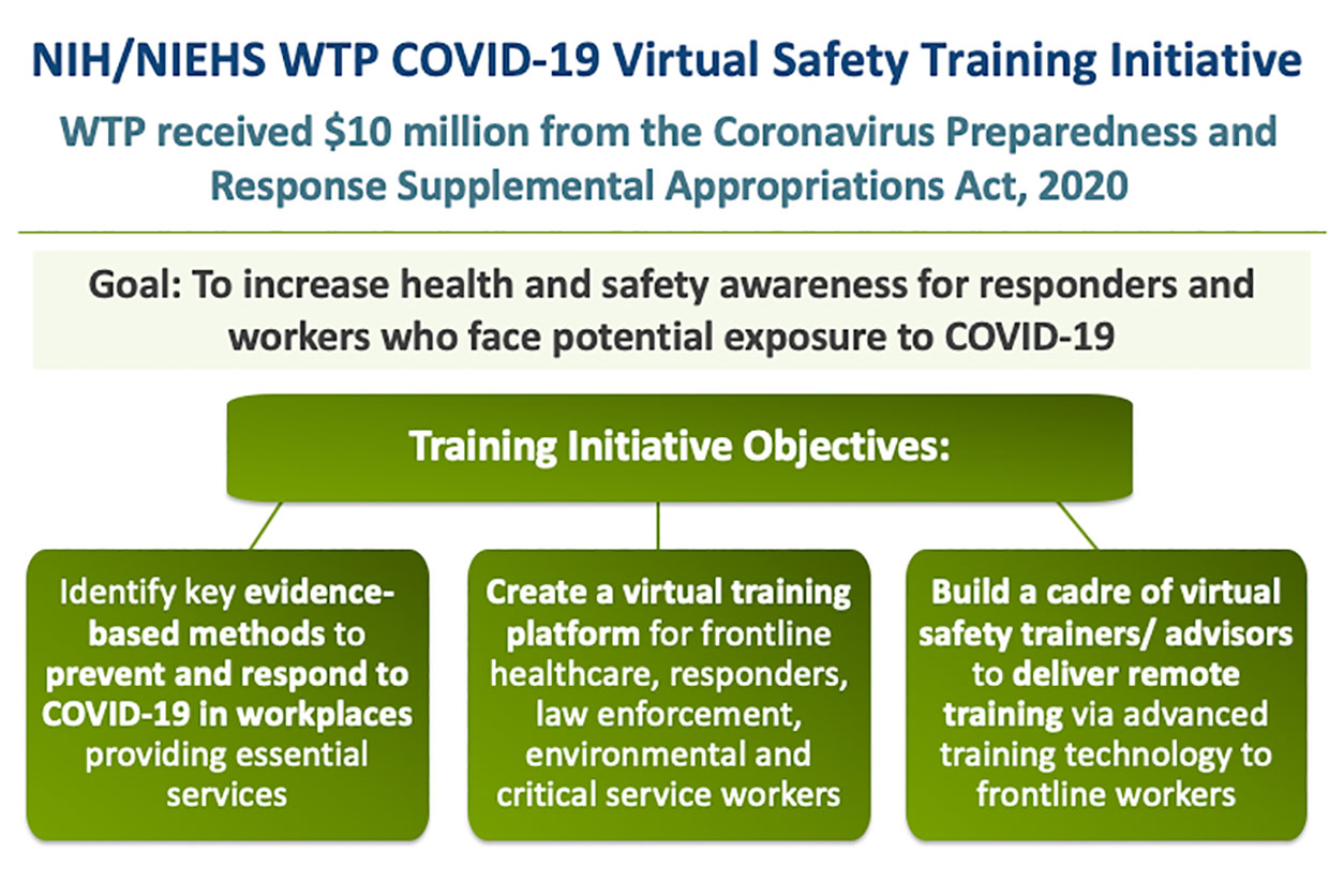 Strategies to prevent spread of COVID-19 and protect frontline workers were front and center during the 2020 Worker Training Program (WTP) virtual workshop(https://tools.niehs.nih.gov/wetp/events.cfm?id=2588) March 17. Federal agency representatives, infectious disease experts, and health and safety professionals shared timely information.