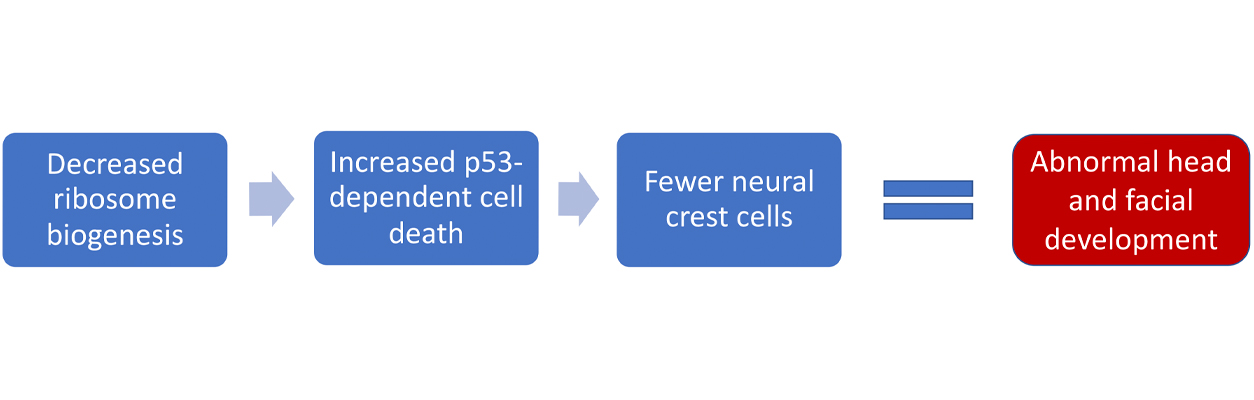 TCOF1 encodes a protein called Treacle. Reduced amounts of Treacle lead to both a lower production, or biogenesis, of protein-producing organelles called ribosomes and to less repair of DNA damage.