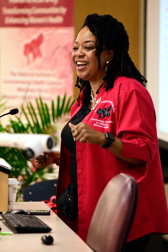 Packenham is pictured at the 2019 Women’s Health Awareness conference, which was held at North Carolina Central University. (Photo courtesy of Steve McCaw / NIEHS)“Transforming Communities by Enhancing Women’s Health” was the theme of the eighth annual NIEHS Women's Health Awareness (WHA) conference, which was held on April 9 and drew more than 1,100 registrants from across the U.S. The conference featured 23 virtual health sessions, exhibitor resources, and health demonstrations.