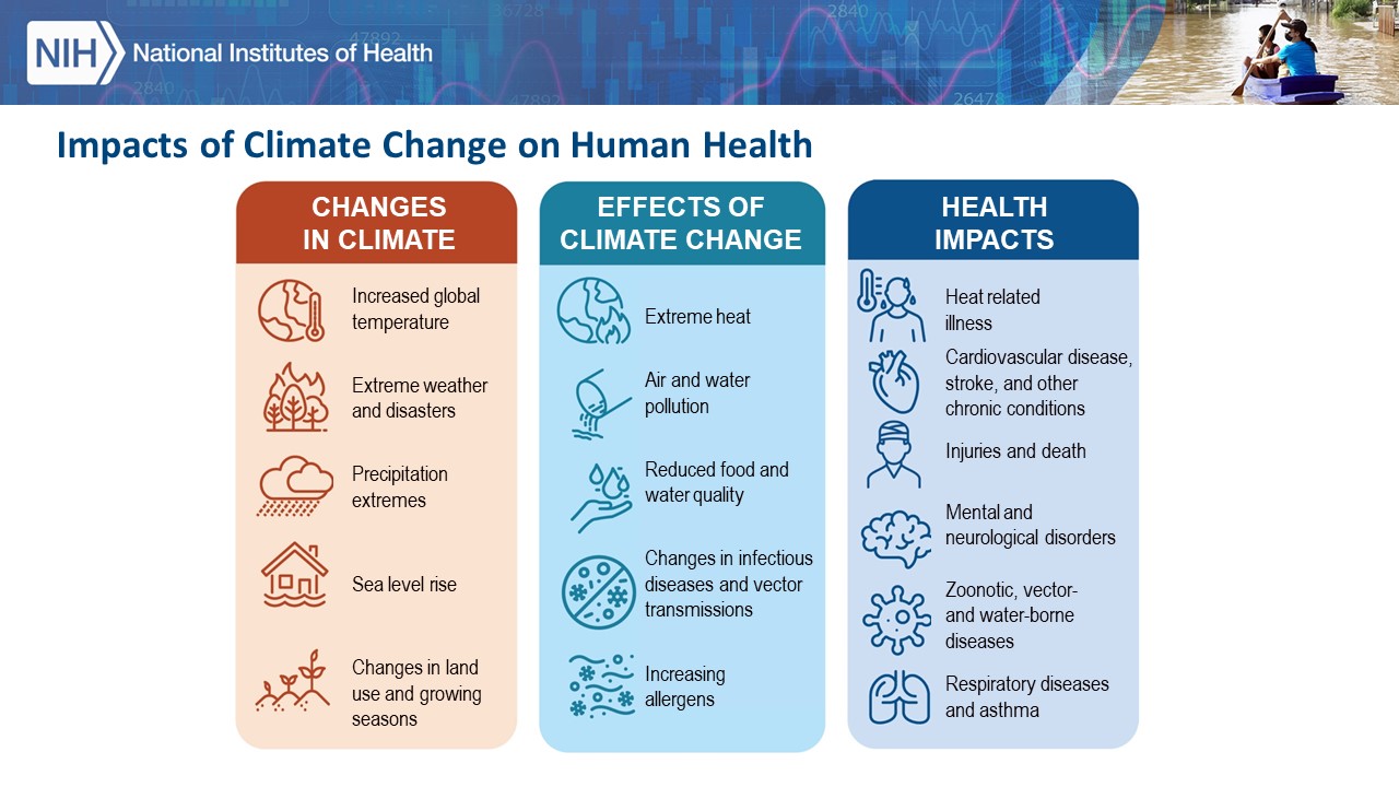 Woychik added, “Addressing climate change and its impact on health is not something one NIH institute or center can tackle on its own.”