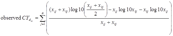 A compiled RNA-seq gene expression dataset consists of a 2-dimensional matrix, in which each row represents a gene expression profile and each column represents a sample. Denote xij as the count of reads from sample j mapped to a gene i and xkj as the count of reads from sample j mapped to a gene k. To measure the count level correlation between two gene profiles, the similarity measure for count data previously defined as